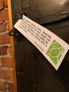 So thank you for documenting our process. It isn’t often that I have a kind and willing accomplice alongside me, but you were so patient. Here’s some proof of where we were, and what we did. I wonder who found those little poems?