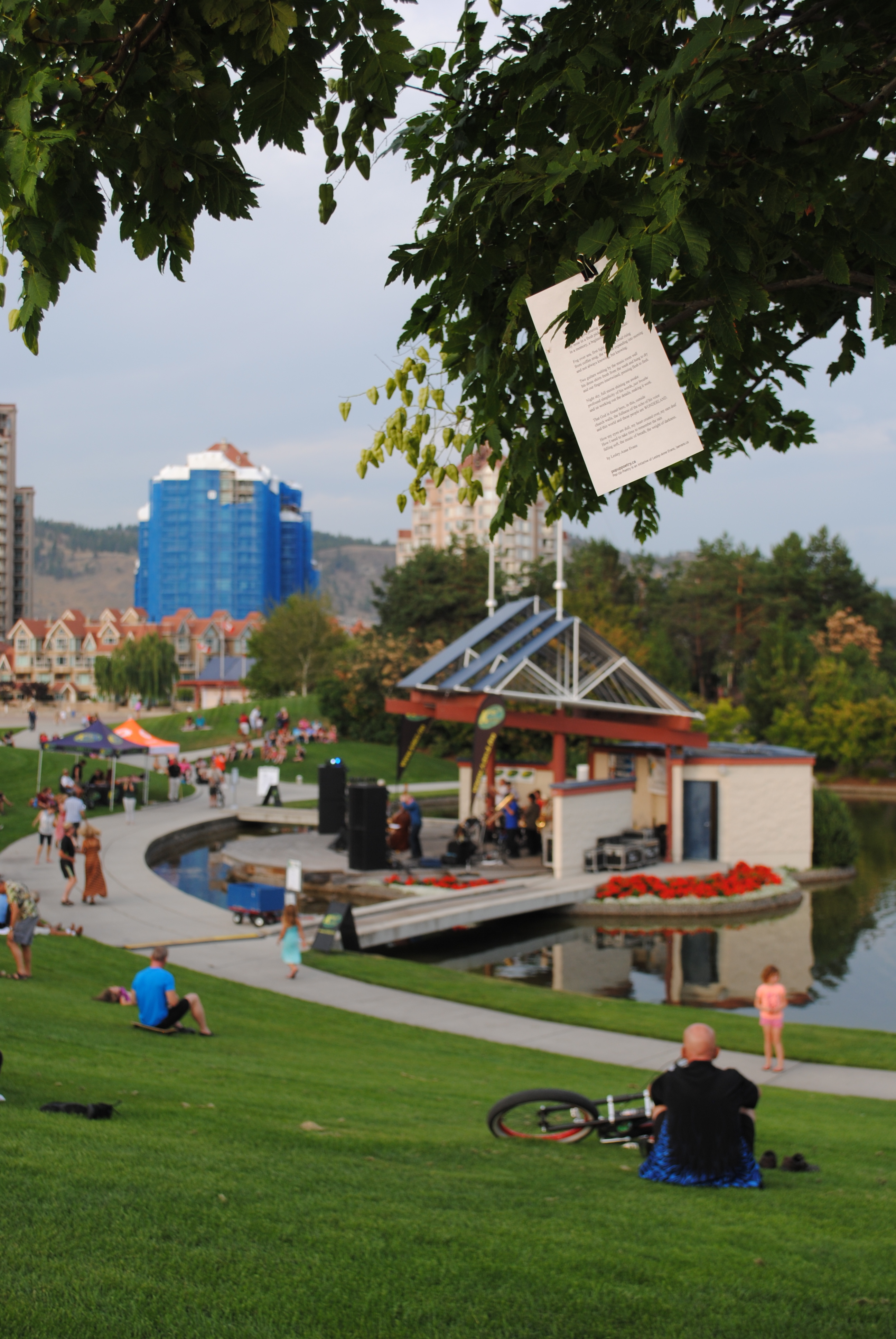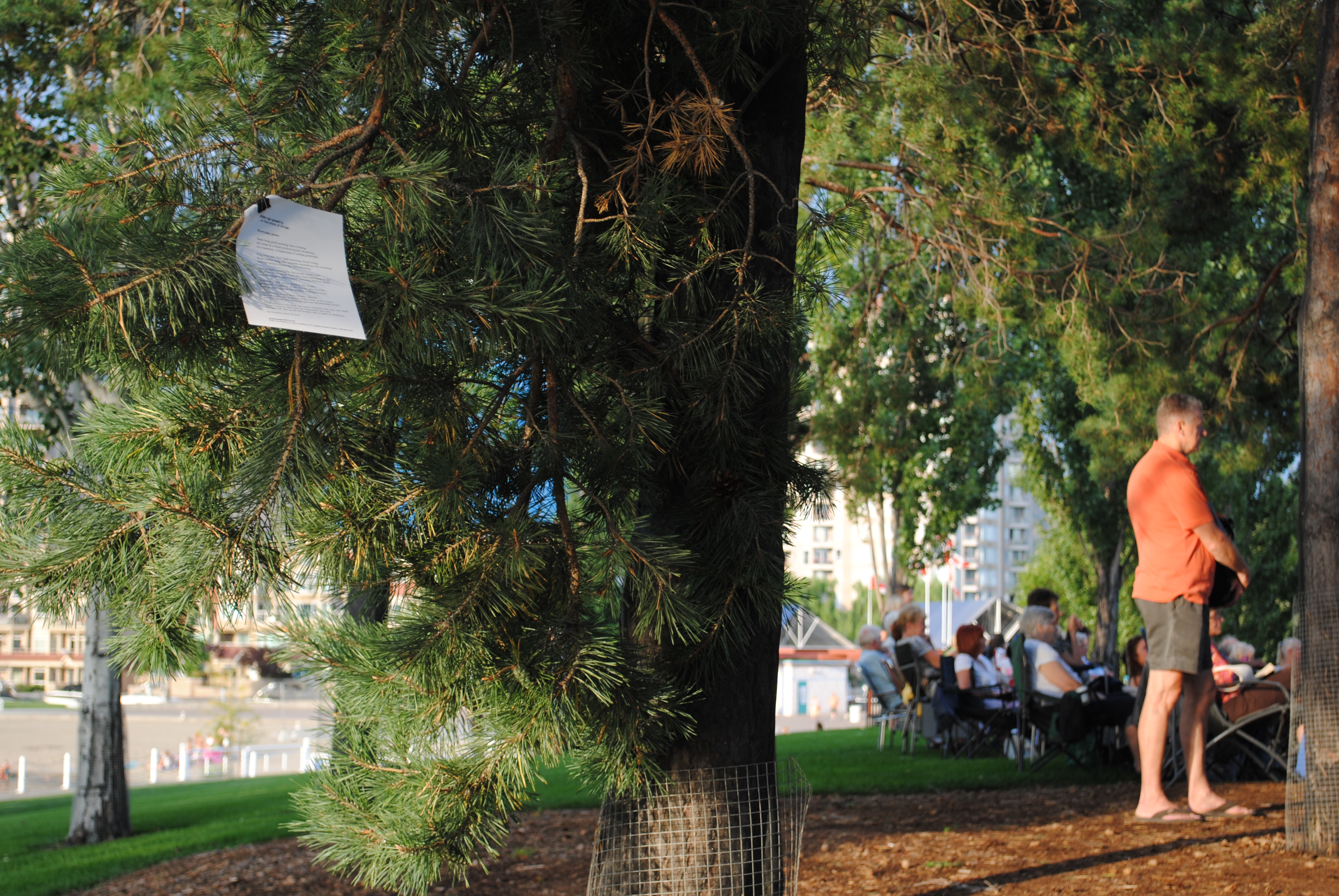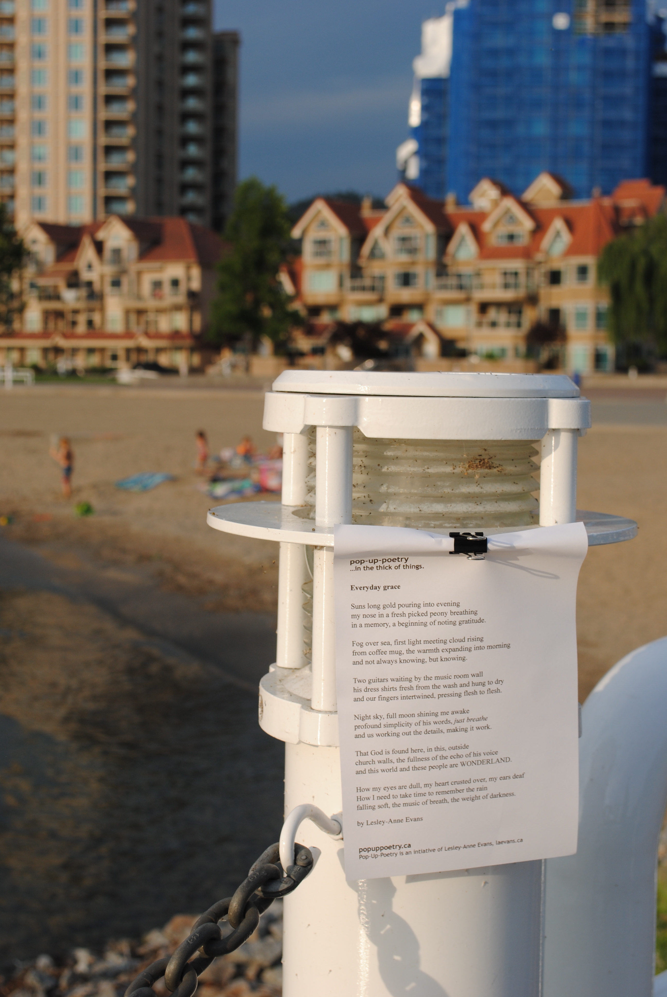 It’s a perfect spring day here in Kelowna, B.C. and it put me in the mood for an installation. I headed out with a giddy feeling in my stomach, and with my supplies…poems, bull clips, a couple of promo postcards, my camera. I chose a S.E. Kelowna location for PUP today, just down the road from where we live now.
